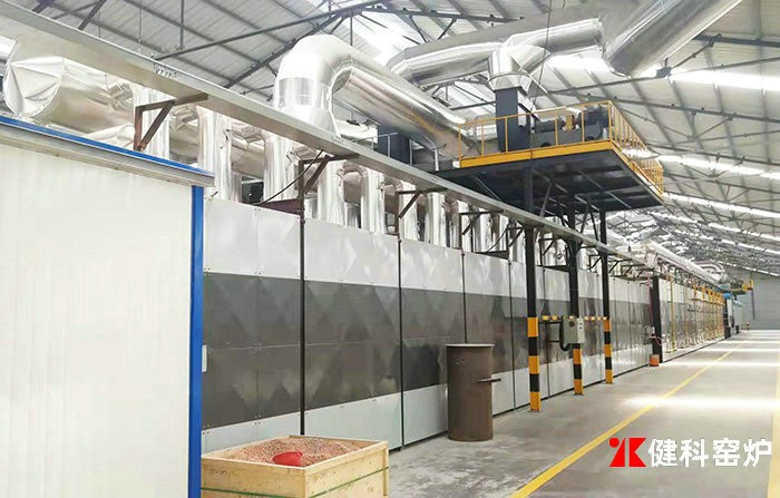 通風(fēng)設(shè)備:包括排煙系統(tǒng)、氣幕攪動(dòng)系統(tǒng)和冷卻系統(tǒng)。其作用是使得窯內(nèi)氣流按一定方向流動(dòng)。